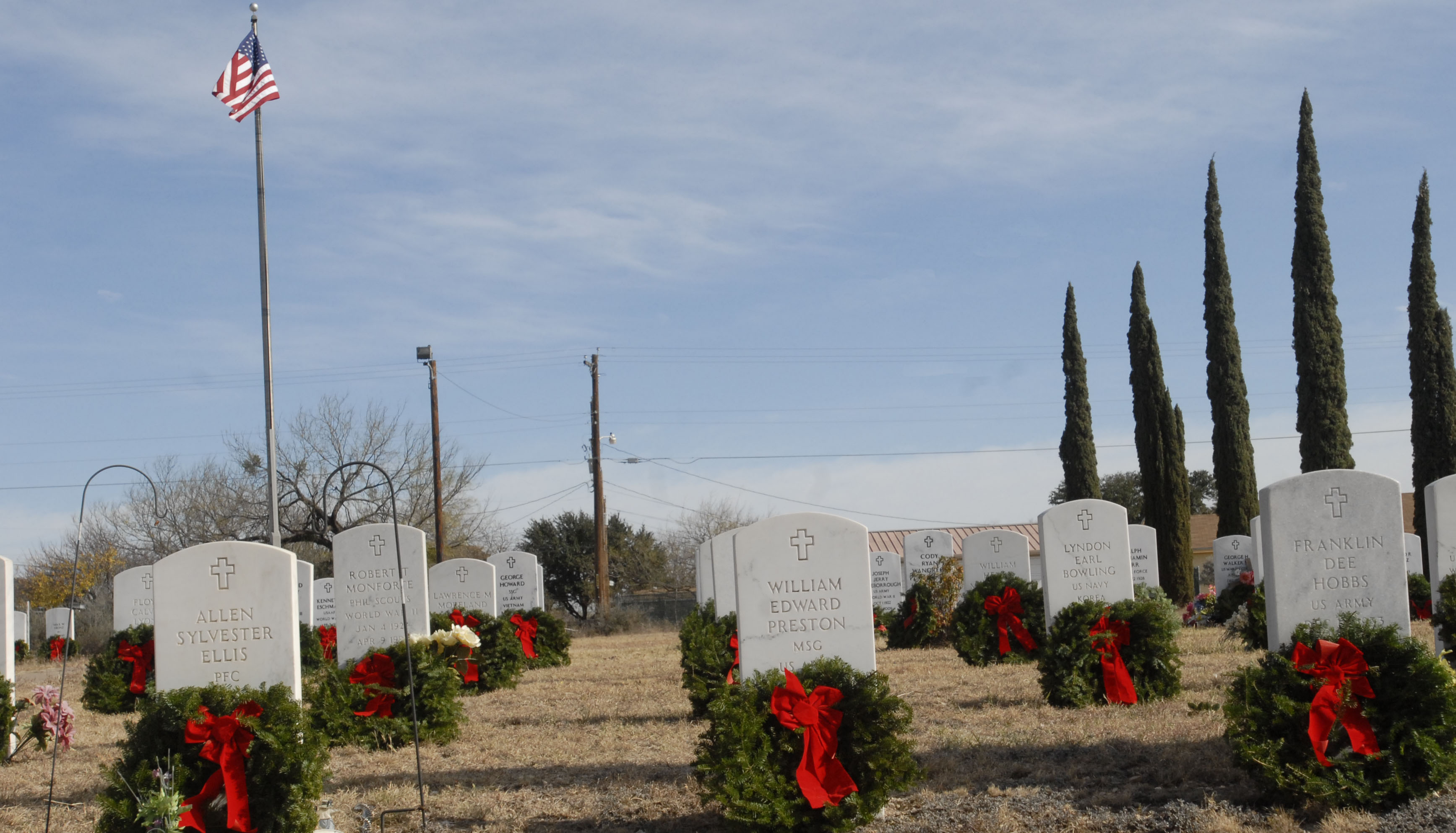 SAN ANGELO, Texas – Members of Goodfellow and the San Angelo community placed wreaths on veterans’ graves in San Angelo’s Belvedere Cemetery during the National Wreaths Across America Ceremony Dec. 11. Wreaths Across America was formed in 2007 to promote veterans remembrance. Wreaths are placed on veterans graves during the holiday season. (U.S. Air Force photo/Kent Cummins)