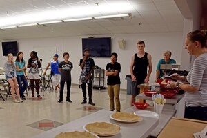 Elizabeth Burmeister, 17th Medical Operations Squadron health promotion coordinator, hosted a Teen Chef Challenge at the Taylor Chapel April 28.The contest pitted four teams against each other to prepare a yogurt parfait and a quesadilla, with a goal of teaching teens about healthy eating and
