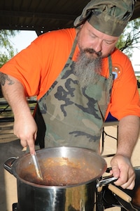 U.S. Air Force Master Sgt. Steven D. Thompson, 17th Security Forces Squadron first sergeant, holds the 17th Mission Support Group guidon during the 10th Annual Airman 1st Class Jacobson Memorial Ruck March opening ceremony at the 17th SFS building Sept. 28, 2015. The march was in honor of security