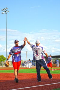 The Goodfellow varsity softball team scrimmaged the Air Force softball team at the Mathis Fitness Center Softball Field, Sept. 8.En route to the Armed Forces Championships, the Air Force team stopped to challenge base teams."We came out swinging the bat really well," said Airman 1st Class John J.